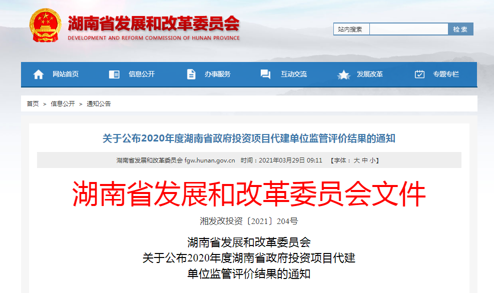 按照《湖南省政府投资项目代建单位监管评价办法(试行)》规定,省、市(州)、县(市、区)发展改革部门对全省代建项目及其代建单位投标行为进行监管评价。我校设计院荣获2020年度湖南省政府投资项目代建单位监管评价A级,这是对设计院严格按照代建合同约定履行代建职责及执行工作流程的高度肯定。