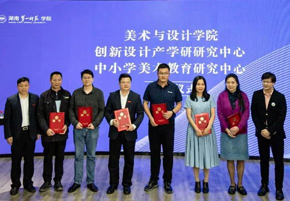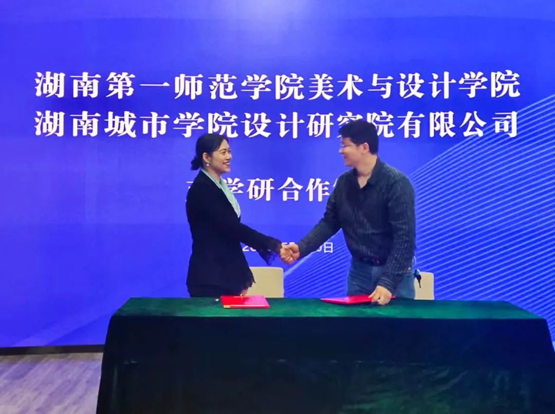 仪式上,湖南第一师范学院美术与设计学院与华体会在线(中国)唯一官方网站设计研究院有限公司签署了产学研合作协议,并聘任设计院院长李志学为“创新设计产学研究中心企业名师”。双方将通过深化校企合作,进一步深度拓展产学研融合,共享共赢。