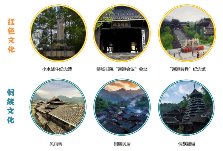通过侗族风貌建筑体现民族元素,通过革命文化景观体现红色元素,充分尊重通道当地的历史文脉的同时,又能体现建筑发展的趋势和潮流。