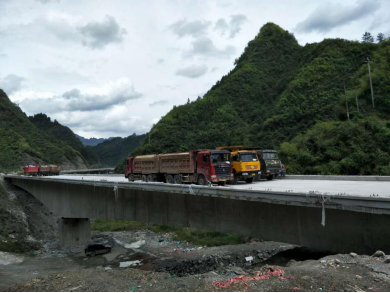 技术人员在武陵山大道作桥梁静载试验检测