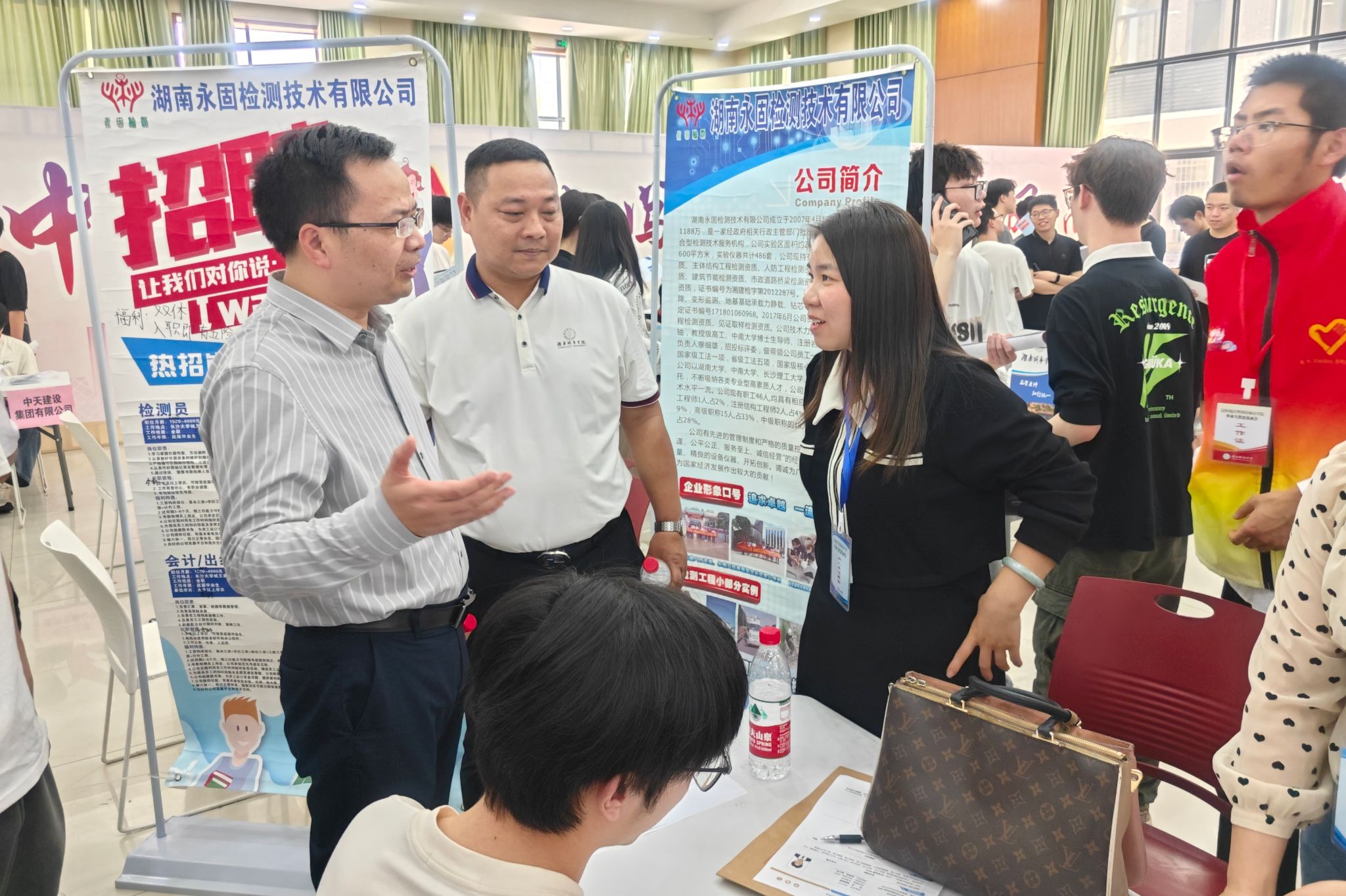本次招聘会涵盖土木工程、工程造价、水利水电工程、安全工程、城市地下空间、智能建造等专业领域,提供了近400个工作岗位。各企业通过播放宣传片、PPT展示、面对面交流等方式向毕业生介绍企业的概况、构成、未来发展方向等。毕业生手持精心准备的简历,积极与招聘人员沟通,了解企业情况与岗位要求。招聘会现场气氛热烈,排队等候咨询的队伍蜿蜒曲折。