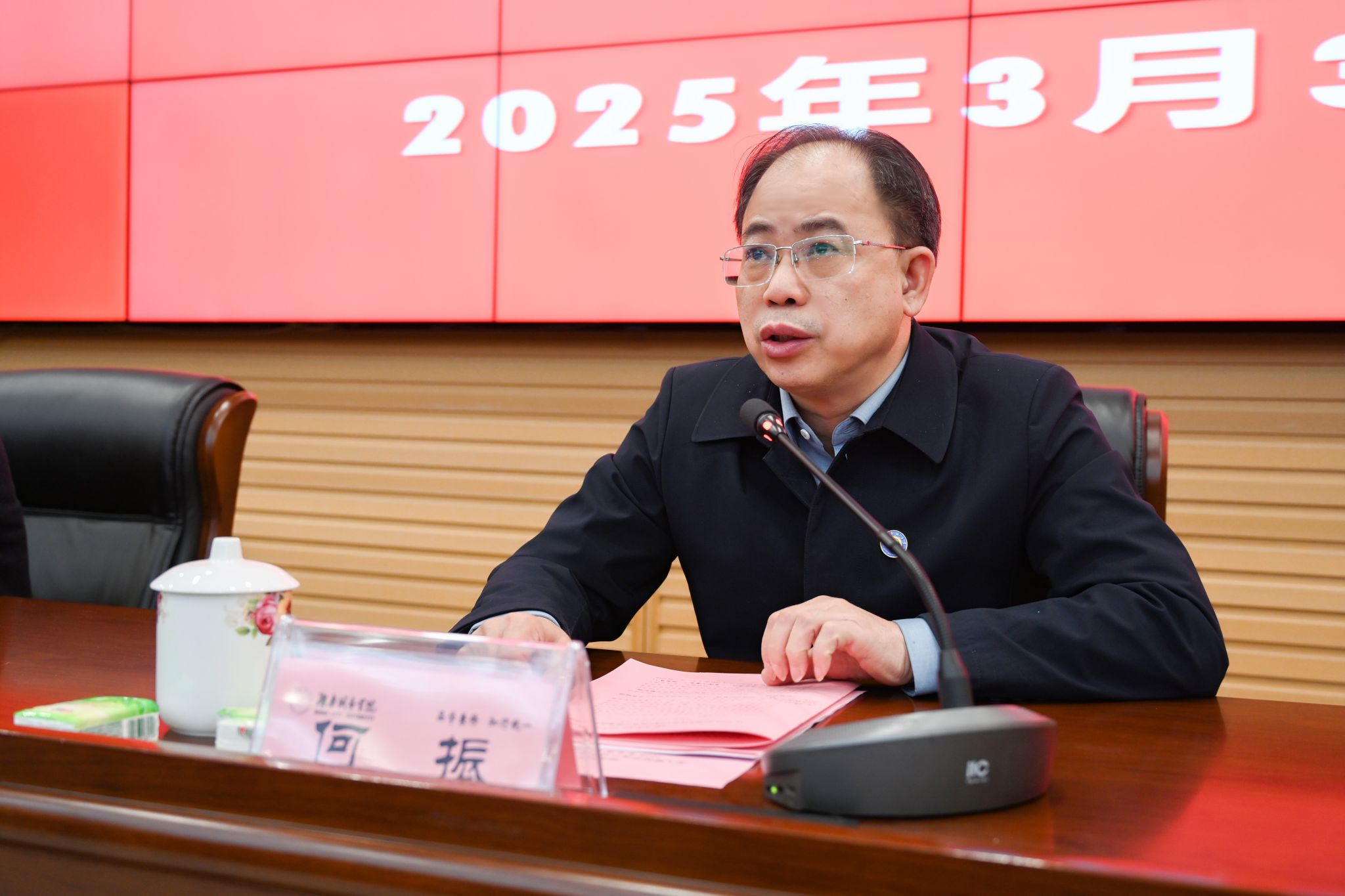 何振对深入贯彻中央八项规定精神学习教育和2025年全面从严治党工作进行了部署。他指出,2025年学校要以学习贯彻中央八项规定精神为抓手,推进全面从严治党向纵深发展。一是要对标中央和省委决策部署抓贯彻落实。强化安全稳定主体责任,定期开展安全隐患排查,加强校园安全管理,维护校园的和谐稳定;二是要聚焦重点领域抓贯彻落实。紧盯“校园餐”强监管、抓整治,紧盯基建招标强监管、抓整治,紧盯继续教育强监管、抓整治,紧盯招生考试强监管、抓整治;三是要坚持一严到底抓贯彻落实。持续加强师德师风教育,严把教师“入口关”,开展师德师风专题教育,压实学校“第一责任人”责任;四是要坚持以案促改筑牢防腐堤坝。推进党纪学习教育常态化长效化,把纪律教育和党性教育、清廉文化教育等贯通起来,把正面引导和反面警示结合起来,抓实“以案说纪以案促改”。