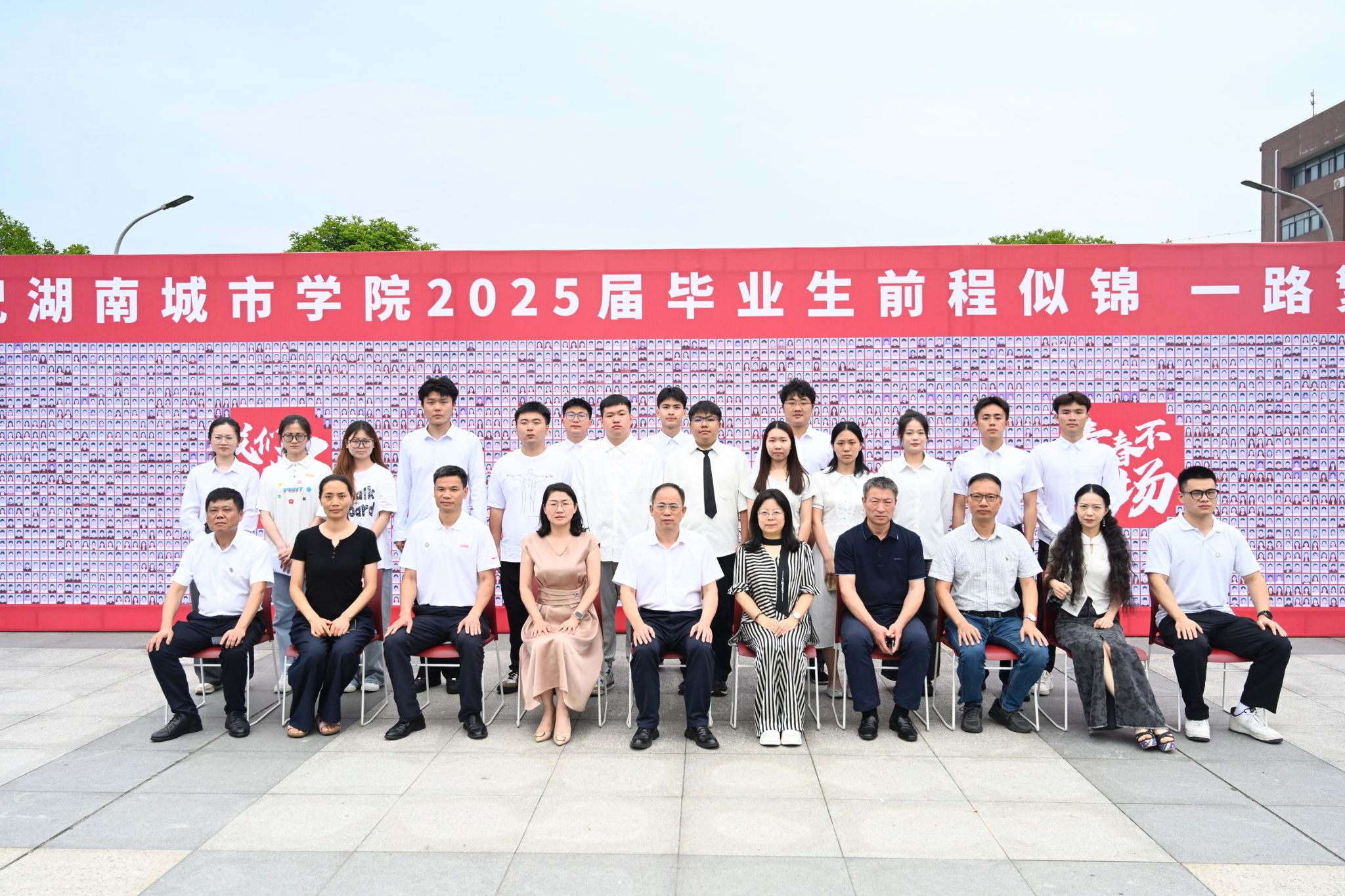 座谈会结束后,与会师生在南门广场毕业生照片墙前合影留念。