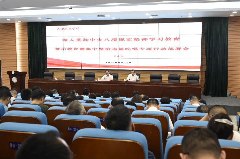 本网讯(通讯员 李玉洁)6月12日下午,我校召开深入贯彻中央八项规定精神学习教育警示教育暨集中整治违规吃喝专项行动部署会。在家的校领导出席会议。