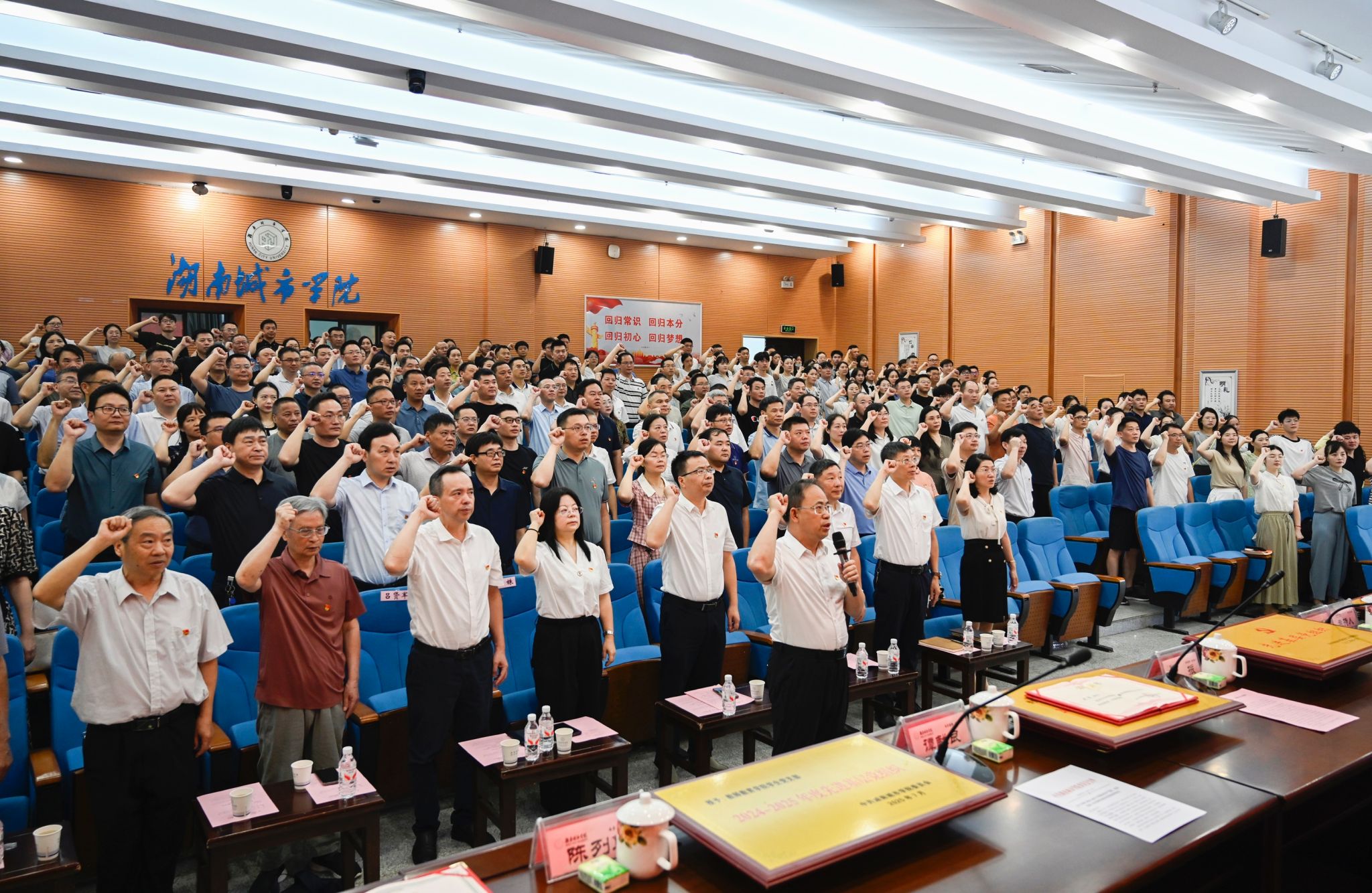 本网讯(通讯员 陈艳姣)为庆祝中国共产党成立104周年,表彰先进典型,凝聚奋进力量,7月1日上午,学校举行2025年“七一”表彰大会暨“光荣在党50年”纪念章颁发仪式,在家的校领导出席大会。会议由党委副书记袁志成主持。