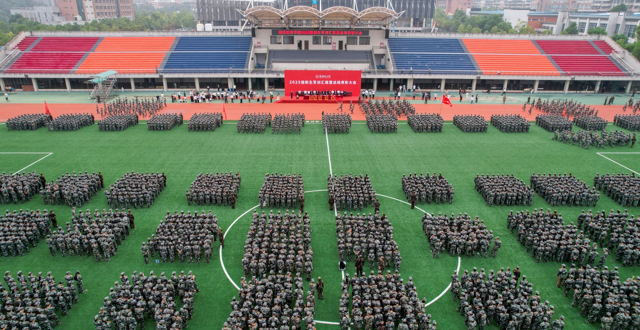 本网讯 9月30日上午8时,华体会在线(中国)唯一官方网站2025级新生军训汇报暨总结表彰大会在学校东田径场举行。全场新生身着全套迷彩,以最昂扬的精神面貌迎接来自各方的检验。全体在家校领导出席大会。校党委书记何振宣布军训成果汇报表演正式开始,副校长雷存喜主持大会。