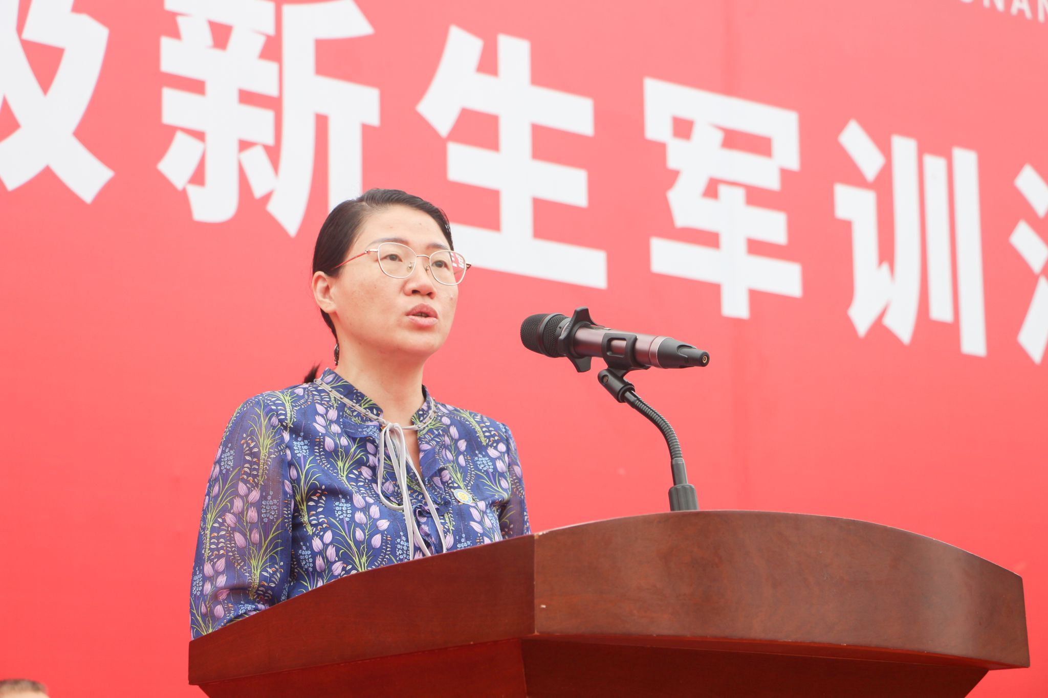 汇报表演结束后,副校长孙倩作军训总结报告。她代表学校向参加军训的全体同学表示慰问,向参与本次军训工作的教官和老师们致以诚挚的感谢。她指出,希望同学们将军训中锤炼的意志转化为攻克学业难关的定力,将培养的纪律意识融入日常学习生活,将凝聚的团队精神用于班级建设与未来发展,以“风雨压不垮、苦难中开花”的青春姿态,在大学舞台上书写精彩的人生篇章。
