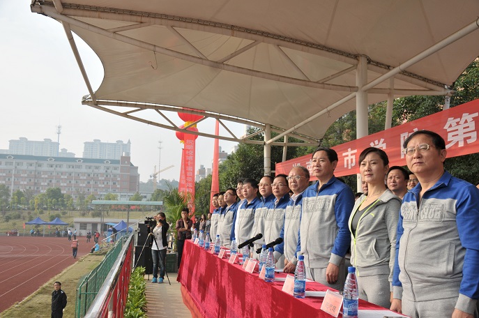 (本网讯)10月24日上午,我校第十届田径运动会在校本部第一田径场隆重开幕。校领导赵运林、李建华、龚卫明、孟昭武、汤放华、丁亮中、郑卫民、杨斌、刘辉煌、范志超、曹太康以及各机关处室、二级学院师生2000余人出席,孟昭武主持开幕式。