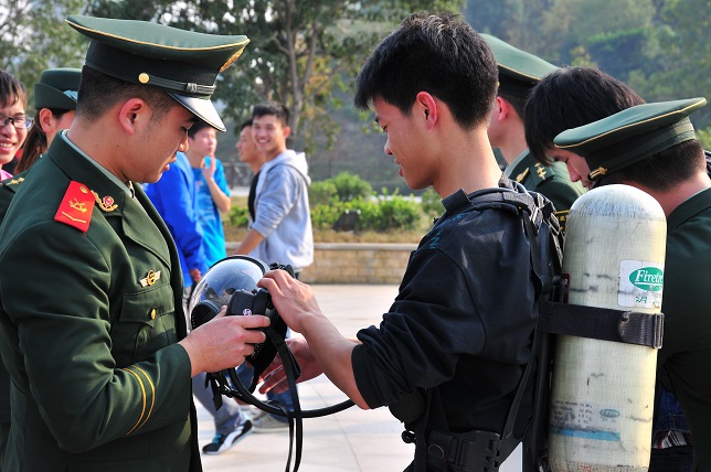 消防战士现场介绍消防空气呼吸器使用方法