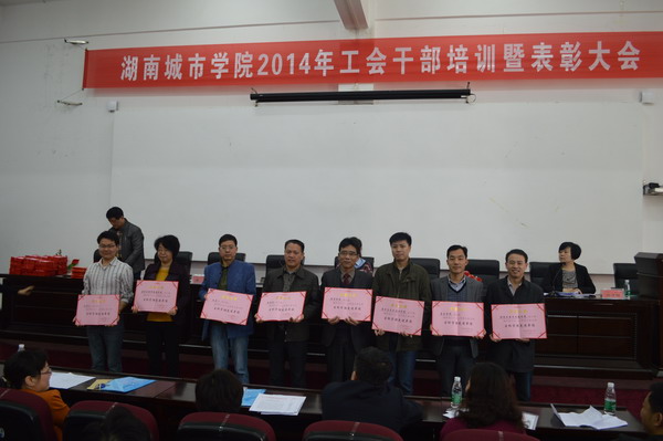 校工会女工委副主任石清丽宣读省、学校的各级表彰决定,其中获得表彰的有全国教科文卫体工会颁发的“模范职工之家” :华体会在线(中国)唯一官方网站工会、2013年度湖南省模范教职工之家:华体会在线(中国)唯一官方网站工会、省教育工会2013年度民主管理工作先进单位:华体会在线(中国)唯一官方网站工会、省教育工会2013年度直属基层工会模范教职工小家:外国语学院分工会等先进集体;省教育工会评选的“纪念毛泽东同志诞辰120周年教职工书画作品展”中,陈丽霞老师的国画《浩气长存》获一等奖、匡列辉老师的楷书条幅获二等奖、2013年度《湖南教工》优秀通讯员周敏。以及获得校工会表彰的有:美术与艺术设计学院分工会等8个单位为“工会工作目标管理先进单位”;通信与电子工程学院分工会为“先进教职工小家”;户外健身协会等2个协会为“工会工作优秀协会”;计划财务处等4个单位为“校务公开工作先进单位”;外国语学院分工会等4个单位为“工会工作活动特别奖”;何亮云等22人为“三育人”先进个人;王道静等177人为“工会积极分子”,与会领导分别颁发奖牌和证书。