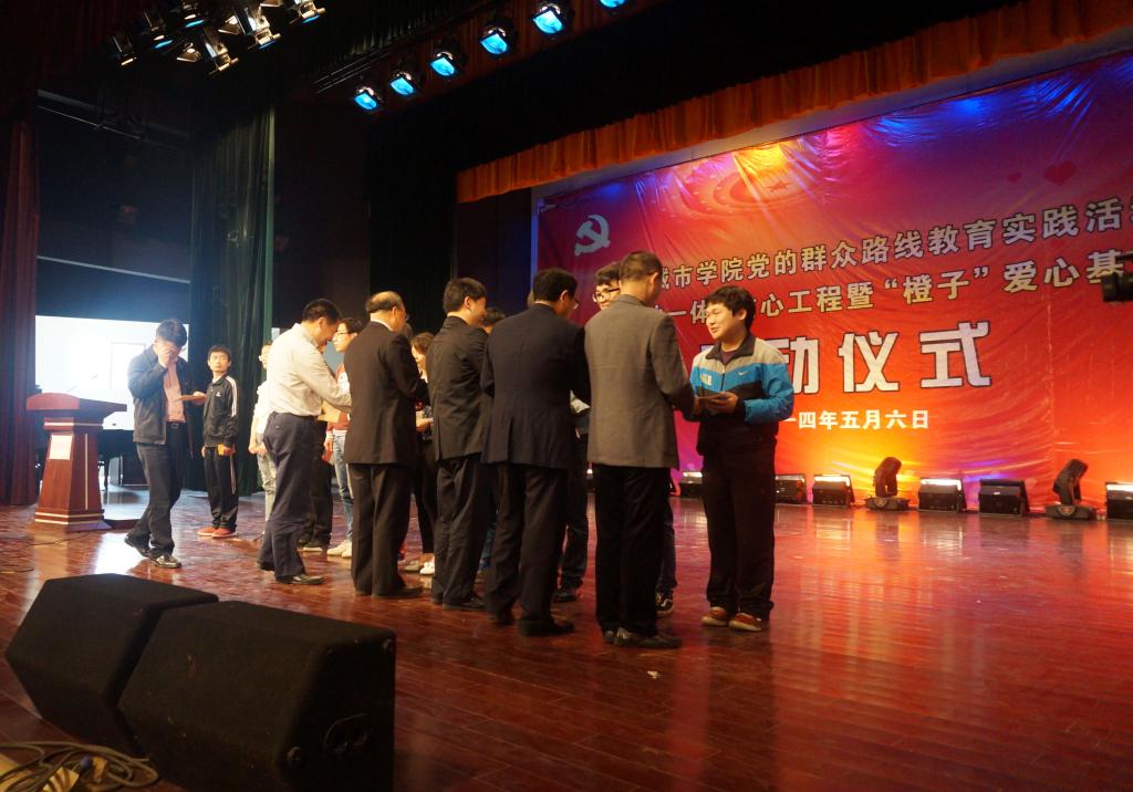 (本网讯)“付出的是爱心和真情,收获的是快乐和欣慰”。5月6日下午,华体会在线(中国)唯一官方网站党的群众路线教育实践活动“三位一体贴心工程”暨“橙子”爱心基金启动仪式在我校音乐厅举行,学校党的群众路线教育实践活动领导小组全体成员,机关处室主要负责人,各二级学院院长、党总支书记及分管学生工作的副书记,学生代表,益阳移动和益阳联通公司负责人参加。仪式由学校党委副书记、校长李建华主持。