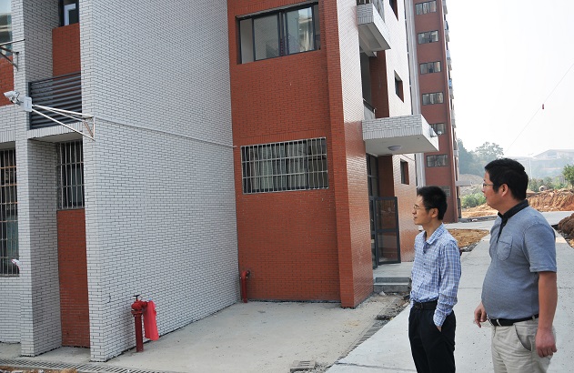 刘辉煌一行走访了高层学生公寓、第二餐饮中心、土木楼等二期工程项目,查看了每个摄像头的安装位置和监控效果,并了解各区域的网络安装情况。