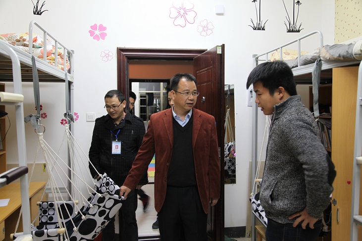 座谈会后,李建奇在学生工作处相关负责人的陪同下走访了校本部学生公寓。