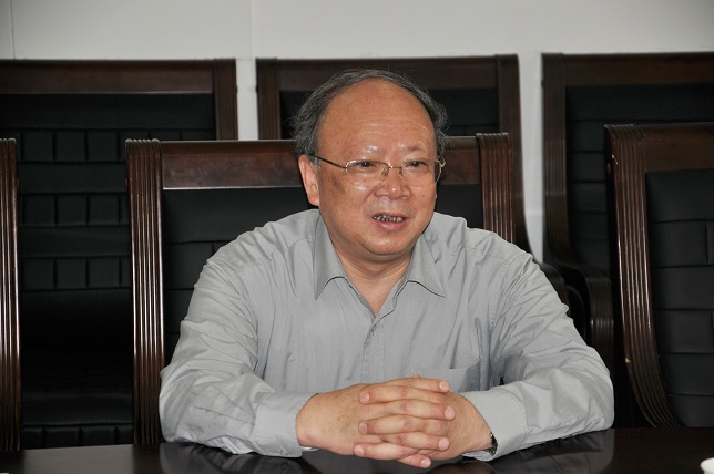 孟昭武向客人们介绍学校情况