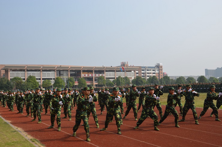分列式结束后,体育学院新生方队、教官方队分别进行了军体拳和精彩的队列表演。
