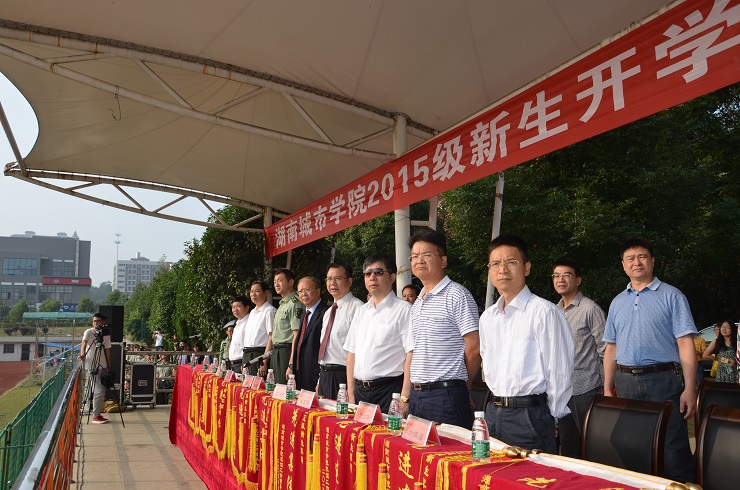 (本网讯) 928上午,2015级新生开学典礼暨军训汇报表演在田径场隆重举行。经过12天的严格训练后,2015级新生以挺拔俊俏的英姿、刚劲有力的步伐、蓬勃激昂的青春,向学校、老师和家长交上了步入大学后的第一份优秀答卷。校领导李建奇、龚卫明、孟昭武、汤放华、丁亮中、刘辉煌、曹太康,相关处室、二级学院负责人以及新生参加典礼。