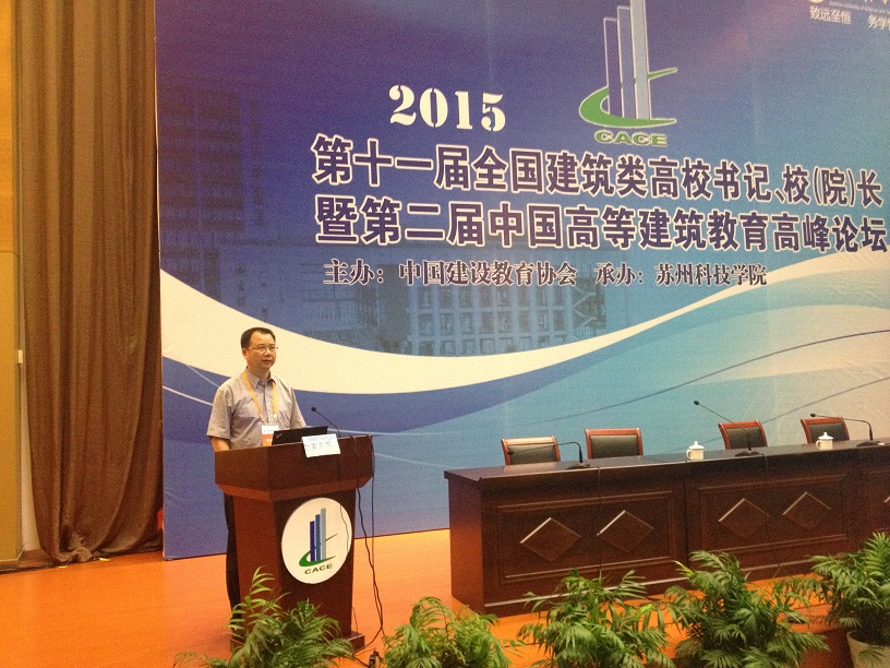 本届论坛由中国建设教育协会主办,苏州科技学院承办,论坛主题为“新常态下高等建筑教育发展”中国建设教育协会副理事长兼秘书长朱光、住房与城乡建设部人事教育司处长高延伟、苏州市人民政府副市长王鸿声、江苏省教育厅高教处副处长徐萍、江苏省住房与城乡建设厅人事教育处副处长戴登军,及来自全国28家单位72名代表出席了开幕式。
