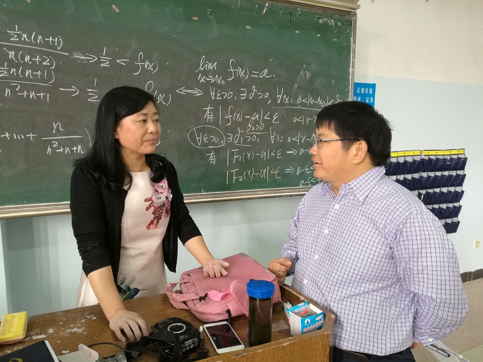 课间罗成翼与授课老师交谈