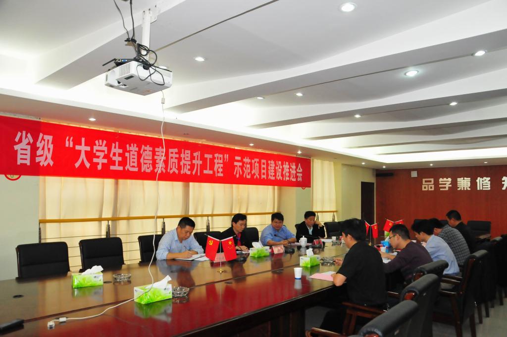 (本网讯)10月18日上午,我校省级大学生道德素质提升工程“区域高校学生党员先进模范作用联动合作机制构建与实践”项目推进会在学校办公楼一会议室召开,党委书记罗成翼主持会议,项目建设合作校益阳职业技术学院副院长杨建华、益阳医学高等专科学校校长助理范珍明、湖南工艺美术职业技术学院学工部长于安国及项目组部分成员参加了会议。