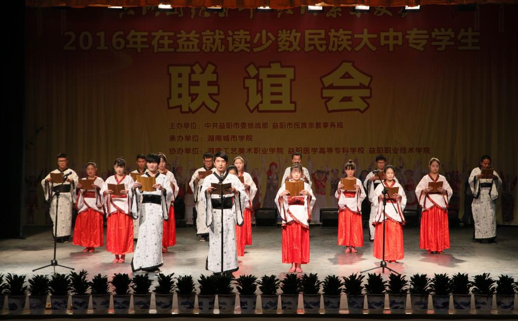 (本网讯)12月18日下午,2016年在益就读少数民族大中专学生联谊会在我校音乐厅隆重举行。联谊会由市委统战部、市民族宗教事务局主办,华体会在线(中国)唯一官方网站承办,湖南工艺美术职业学院、益阳医学高等专科学校、益阳职业技术学院协办,主题为“共同团结奋斗 共同繁荣发展”。益阳市委宣传部、市委统战部、市民族宗教事务局、市公安局、市教育局、市文体广新局以及四所高校相关负责人出席联谊会。
