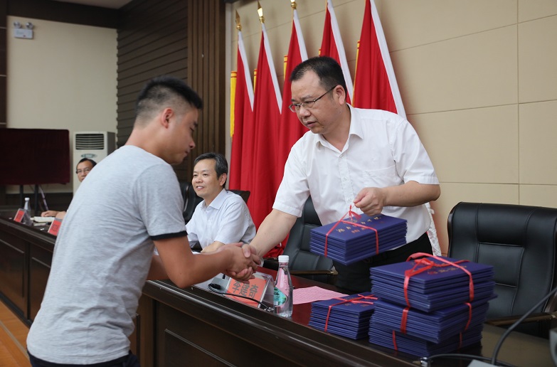 答辩结束后,校长李建奇为学员们颁发了培训结业证书。李建奇指出,此次公开答辩和学习成果展览,充分展示了培训班取得的丰硕成果。希望今后学校与安化县委县政府能进一步深化“校地合作”,在支柱产业发展、专业人才培养、特色文化挖掘、精准扶贫等领域,开展多层次、全方位的合作,确保签订的各项合作协议落地见效,探索新的互利共赢合作切入点。他希望培训班所有学员学以致用,以此次学习培训为新的起点、新的动力,在安化县委县政府的坚强领导下,进一步解放思想,勤学善思,真抓实干,廉洁自律,努力工作,将所学知识技能运用到实际工作中,不断开创安化城建规划新局面,为安化经济社会发展作出更大的贡献。
