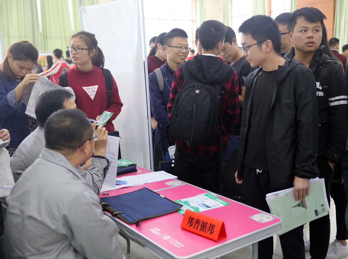 (本网讯)10月23日,“相约宁乡”工业企业专才招聘会暨长沙人才新政进校园活动华体会在线(中国)唯一官方网站专场宣讲会在学校学生活动中心举行。副校长郑卫民,宁乡市委组织部、人力资源和社会保障局相关负责人,招生就业处相关负责人以及近500名毕业生参加了宣讲会及现场招聘。