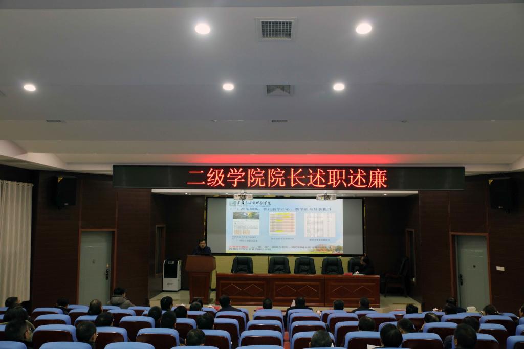 (本网讯)1月9日至10日,学校在建规楼121报告厅和办公楼一会议室举行了中层正职干部述职述廉大会。二级学院院长、党委(党总支)书记,机关、教辅单位主要负责人分别作了公开述职述廉。在家的校领导出席了会议。会议分别由党委副书记汤放华和副校长何振主持。