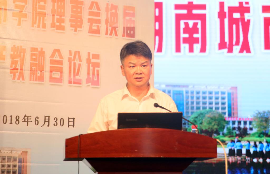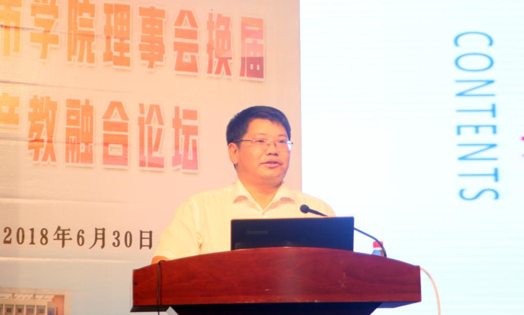 党委书记、理事长罗成翼作了学校工作报告。他代表全校 2万余名师生对各位嘉宾的到来表示热烈的欢迎,对各级领导、社会各界特别是广大理事单位和理事成员为学校建设、改革、发展所给予的关心、支持与帮助表示衷心的感谢。他介绍了学校的基本情况、特色优势以及综合改革取得的成绩,他说,第三次党代会以来,学校制定了"1235"发展战略,推进了以六破六立为主要内容的综合改革,构建了"1234"应用型人才培养体系,学校一些核心指标明显进位,办学特色不断彰显,教风学风明显好转,办学效益明显增强,职工的收入持续提高,校容校貌全面提质,学校改革发展之快,成效之好,变化之大,得到广泛认同,值得自豪。但对标学校发展目标,对标同类高校一流水平,对标双一流要求和硕士点要求,我们差距还大,任务还重,绝不能有半点自傲和懈怠,我们唯有埋头苦干,艰苦奋斗,众志成城,改革创新,追赶、追赶、再追赶!让我们高举习近平新时代中国特色社会主义思想伟大旗帜,紧跟高等教育发展新形势,以不变的定力,不懈的节奏,落实四个回归,朝着高水平应用型大学奋力前行。
