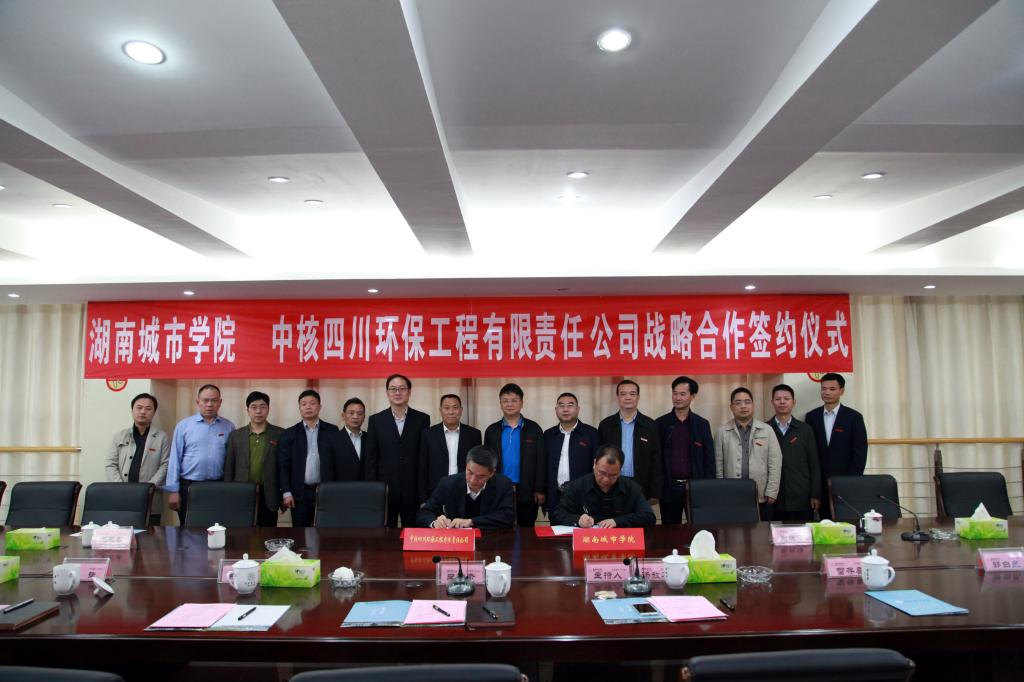 (本网讯)2018年10月16日下午,我校与中核四川环保工程有限责任公司校企合作战略协议签约仪式在办公楼一会议室举行。中核四川环保工程有限责任公司总经理、党委副书记尤永春,人力资源总监谢晓峰和人力资源处、办公室相关人员,校领导李建奇、汤放华、郑卫民、雷存喜、李斌和有关部门、二级学院负责人出席签约仪式。签约仪式由党委副书记汤放华主持。