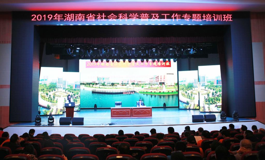 (本网讯)2019年5月10日,湖南省社科普及工作专题培训班在我校音乐厅举办。培训班由省社科联党组书记宋智富主持,省社科联副主席丁宇,校长李建奇、党委副书记汤放华、副校长何振以及全省社科联系统和143家省级社科普及代表参加。