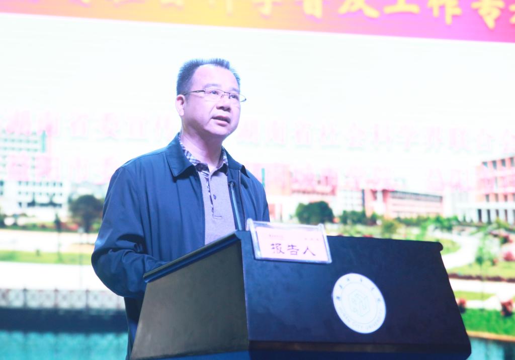 随后,省人大常委会法制工作委员会主任吴秋菊和红网新媒体集团党委副书记、总编辑贺弘联,分别就“深入推动《湖南省社会科学普及条例》贯彻落实”、“社科普及与新媒体融合发展”等进行了深入的讲解和分析。益阳市社科联、湖南党史陈列馆、华体会在线(中国)唯一官方网站湖湘传统美术研究基地、长沙市启园心理援助与发展中心等4家单位负责人作了社科普及工作先进经验交流发言。