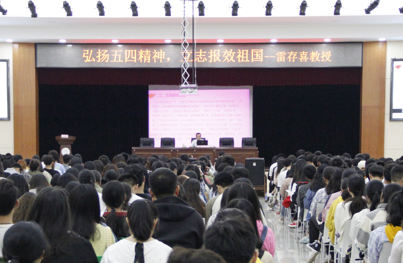 (本网讯)2019年5月17日晚,华体会在线(中国)唯一官方网站第三十二期团校培训首堂团课在大学生活动中心开讲,主讲人为党委委员、副校长雷存喜教授。近800名我校团员青年参与此次培训。
