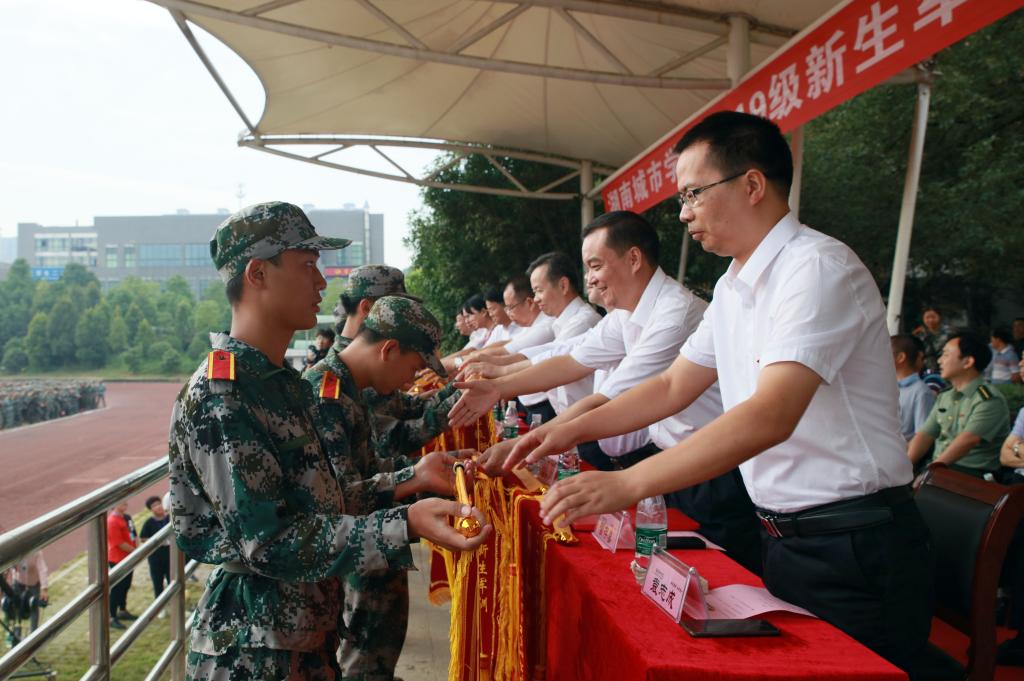 党委副书记汤放华宣读了《华体会在线(中国)唯一官方网站2019级新生军训表彰决定》:体育学院、机械与电气工程学院、建筑与城市规划学院、艺术学院获得训练先进营称号,机械与电气工程学院100连等11个连队获训练先进连称号,材料与化学工程学院等4个营获内务优胜营称号,市政与测绘工程学院7连等11个连队获内务优胜连称号,教师教育学院获优秀组织奖;毛欢欢等被8人被评为优秀辅导员及工作人员,夏凤瑞等28人被评为优秀教官,刘泉蔚等216人被评为军训标兵。与会校领导为受表彰的集体和个人颁发了锦旗。