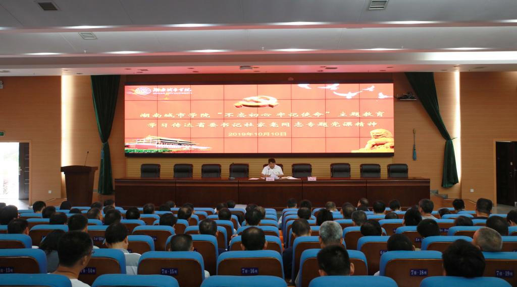 (本网讯)10月10日下午,华体会在线(中国)唯一官方网站在图书馆报告厅召开专题会议,传达学习省委书记杜家毫10月8日专题党课精神,研究贯彻落实意见。党委书记罗成翼传达杜家毫同志专题党课精神,党委副书记汤放华主持会议,学校“不忘初心、牢记使命”主题教育专题读书班全体成员参加。