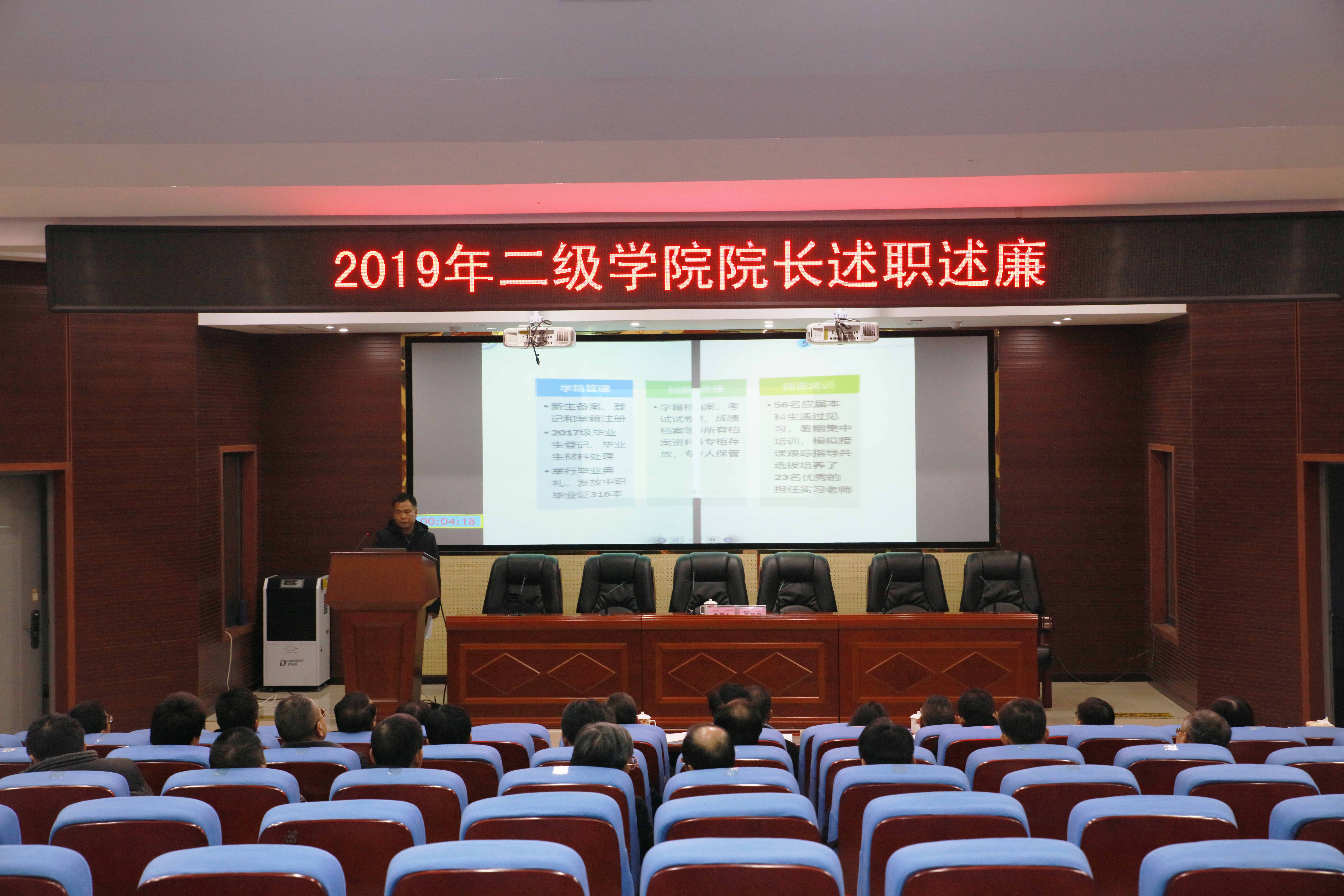 (本网讯)2019年1月6日至7日,我校2019年中层正职述职述廉会议分场次在建规楼121报告厅、一办公楼一会议室召开。二级基层党组织书记,二级学院院长,党政、群团及直属单位主要负责人分别作了公开述职述廉和交叉测评。在家的校领导出席会议并参加了测评