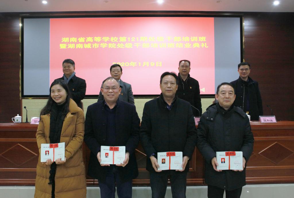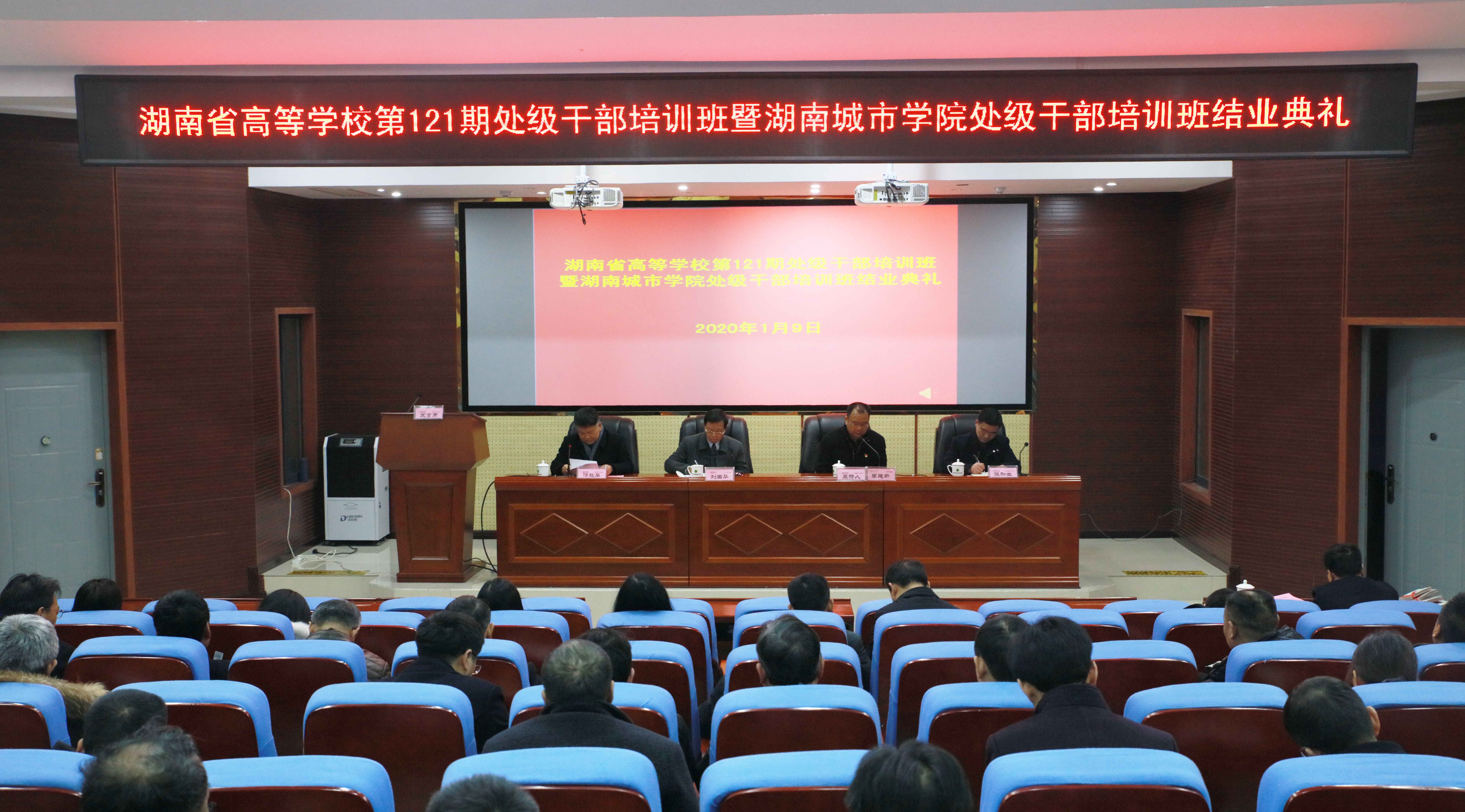 (本网讯)2019年1月9日,湖南省高等学校第121期处级干部培训班暨华体会在线(中国)唯一官方网站处级干部培训班结业典礼在我校图书馆报告厅举行。湖南省高校干部培训中心主任、书记,省委教育工委党校常务副校长刘国华,省高校干部培训中心副主任张和生,党委副书记汤放华,党委委员、组织部长袁志成出席。结业典礼由党委副书记、校长李建奇主持。