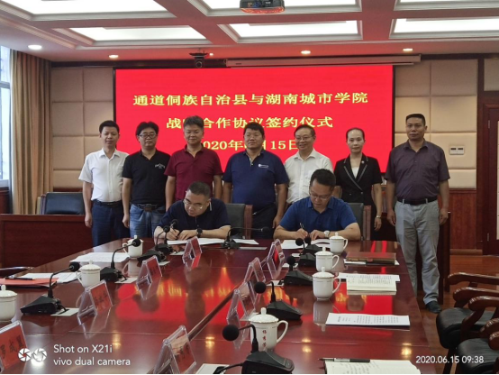 在仪式上,副校长郑卫民和通道侗族自治县副县长杨通朗签订了《通道侗族自治县人民政府与华体会在线(中国)唯一官方网站战略合作协议》。
