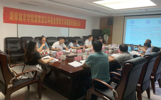 本网讯(通讯员 孙倩)近日,由我校“湖南省新型城镇化研究院”承担的5项湖南省2019年度社科基金智库专项课题举行项目集中开题会。会议邀请了湖南省委政策研究室副主任李先吉、湖南师范大学潇湘学者陈文胜、湖南省委农村工作办公室秘书处副处长熊飞、水利厅政策法规处副处长刘厚乾、住建厅房地产处副处长邓欣和湖南财政经济学院研究院苏昌贵6位专家莅临指导。湖南省社科规划办陈湘文主任和刘子敏副主任也出席会议指导课题开题。会议由我校科研处处长张伟主持,副校长何振致欢迎词。