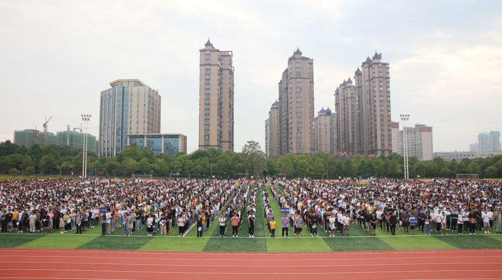 本网讯(通讯员 康安琪)2020年9月7日清晨,华体会在线(中国)唯一官方网站“讴歌新时代 欢庆50年——‘爱党爱国爱校’主题教育活动启动仪式暨2020年秋季开学第一次升旗仪式”在东田径场举行。党委书记罗成翼出席仪式并讲话,党委副书记、校长李建奇主持仪式。学校学生德育工作小组成员、二级学院党委书记及分管学生工作的副书记、辅导员、班主任及五千余名学生参加升旗仪式。