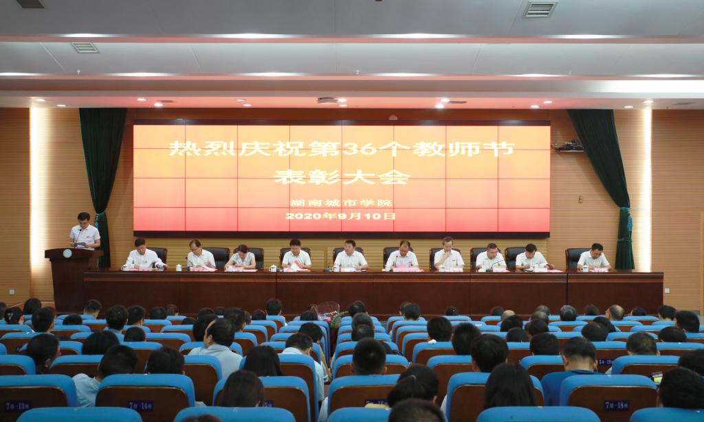本网讯(通讯员 雷欢)2020年9月10日上午,为庆祝第36个“教师节”,学校在图书馆报告厅隆重举行教师节表彰大会。全体校领导、各职能部门负责人和二级学院负责人及教师代表200多人参加会议。会议由校长李建奇主持,党委书记罗成翼出席会议并讲话。