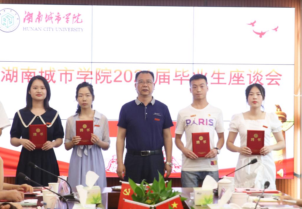 会上,15名毕业生代表踊跃发言。人文学院李珺被中国人民大学法学院录取,她由衷表达了对学校严抓学风的认同。市政与测绘工程学院张巍、信息与电子工程学院邓琪、理学院叶雨辰、机械与电气工程学院罗方宏、体育学院尹霞、国际教育学院阳敏娇也考上了中南大学、湖南大学、湖北大学等重点大学的研究生,他们表达了不负学校培养、继续努力深造的决心。土木工程学院赵文博、管理学院谭文灵飞、材料与化学工程学院王栋林在中建一局、四局、五局等央企如愿就业,他们一致表示得益于学校“一二三四”应用型人才培养模式和良好的毕业生就业举措。管理学院群培是一名藏族学生,报考了西藏公务员正等待被录取的他,饱含深情地说:“我感恩党和国家的政策关怀,让我从一名喜马拉雅山下的牧民,成长为合格的大学生。也希望有更多大学生到祖国和人民最需要的地方去。”艺术学院的张钊钊也正等待被西部计划志愿者录取,她表达了为西部建设助力的美好憧憬。建筑与城市规划学院毕业生钱佳考上了浙江省兰溪市公务员,即将实现学成归来建设家乡的梦想。曾任华体会在线(中国)唯一官方网站习近平新时代中国特色社会主义思想读书会副会长的许韵瑜是一名中共党员,她考上了益阳乡镇的选调生,社团负责人的任职经历让她感受到了将专业知识学以致用的成就感和团队合作的意义。曾任校学生会主席的张继文,即将去往中联重工就业,他感慨学校近年来在基础设施建设、校园文化建设和人才培养质量上的日新月异,祝愿学校早日建成湖南城市大学。毕业生代表们纷纷表示,将永记“品学兼修 知行统一”的校训,永怀城院情,永为城院人,努力做到“今朝我以城院为荣,明日城院以我为荣”。