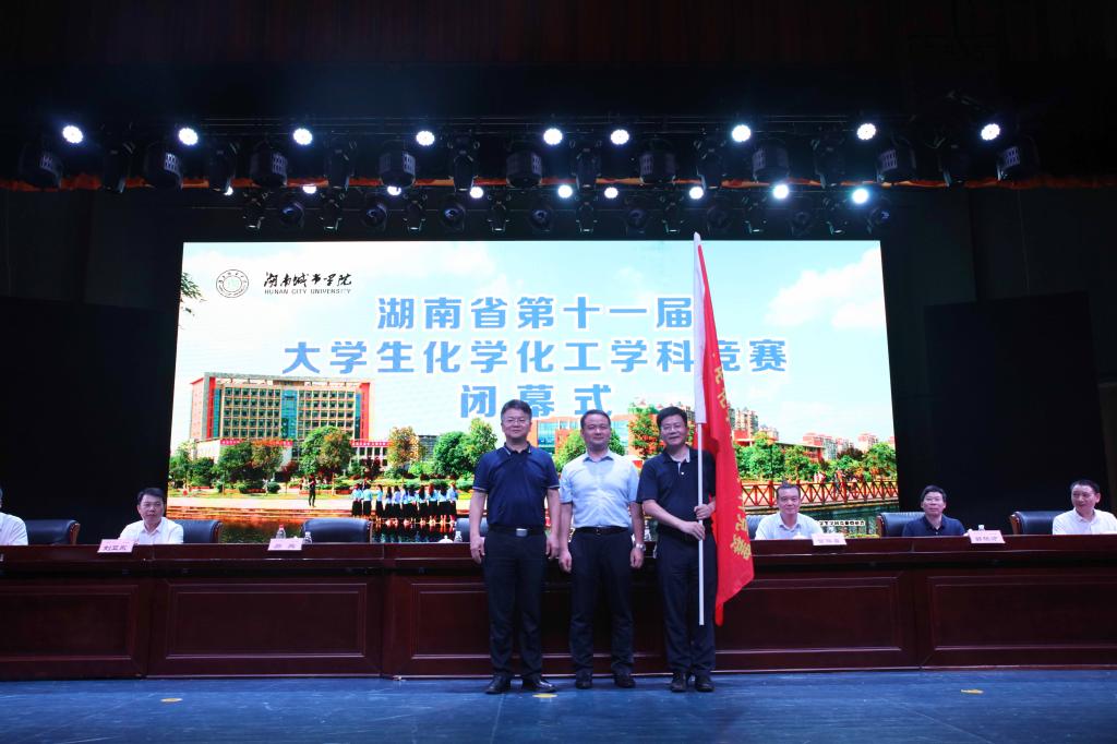 校长汤放华代表承办单位向下一届承办单位湖南工程学院转授竞赛旗。