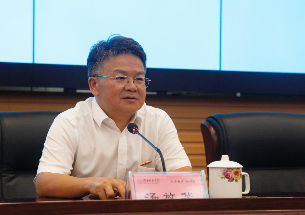 汤放华指出,新形势下的高等教育,正面临重大而深刻的变革。学校办学要紧跟时代发展步伐,坚持以人民为中心发展教育,坚持扎根中国大地办教育,坚持服务中华民族伟大复兴作为教育的重要使命,紧紧围绕立德树人这一根本任务和为党育人、为国育才这一历史使命,加快推进教育现代化,办好人民满意的大学。要结合工作实际,结合学校“十四五”规划,从政治性、人民性、方向性、系统性、实践性、科学性六个方面本质特征着手,深刻领会、准确把握习近平总书记关于教育的重要论述的精髓要义。