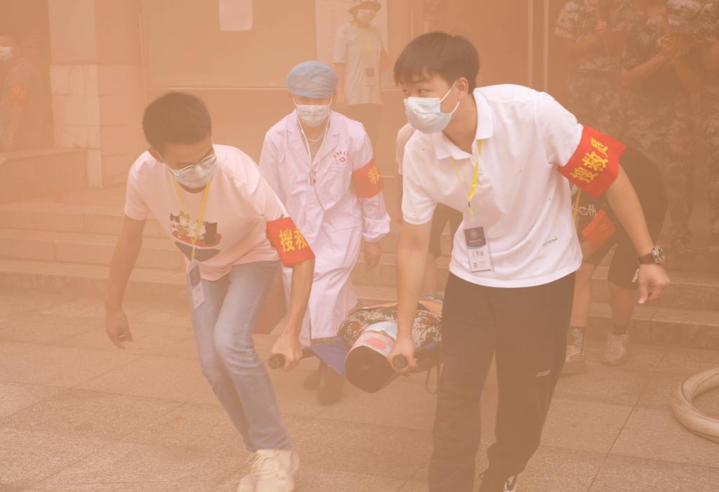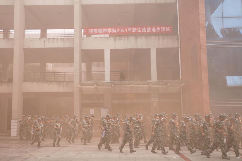 本网讯(记者 文彦波 摄影 博夕)“铃!铃!铃!”9月28日中午12时许,华体会在线(中国)唯一官方网站第二教学楼内突然传来一阵急促刺耳的警报声,滚滚浓烟从楼内各处漫出,一名名身着迷彩装的青年学子用湿毛巾捂住口、鼻,弯着腰迅速从楼内撤出,与此同时,校园里响起消防车的警笛声……