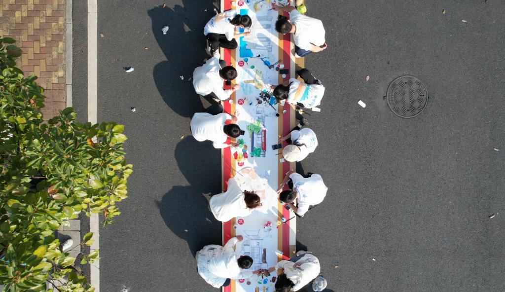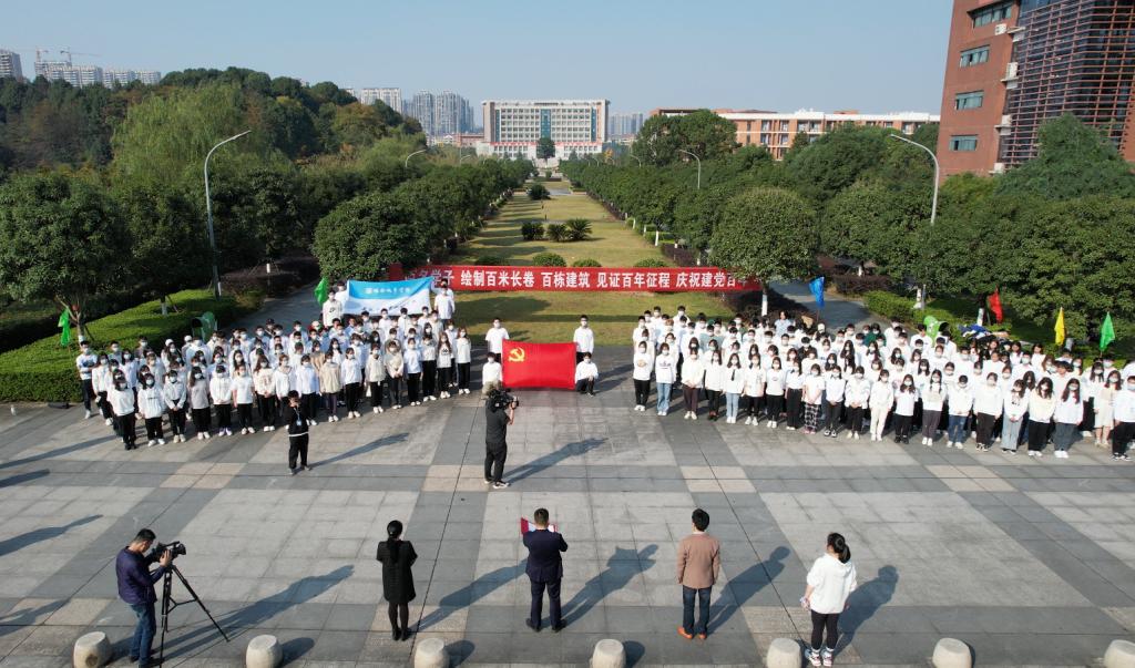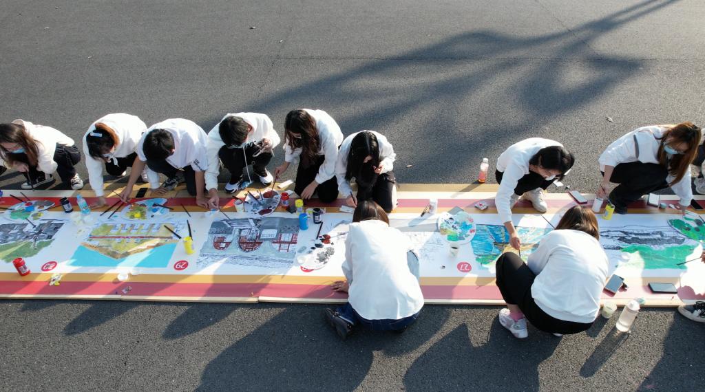 【党史学习教育】华体会在线(中国)唯一官方网站百名学子绘制百米长卷 百栋建筑见证百年历程