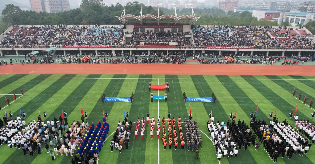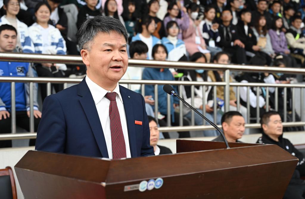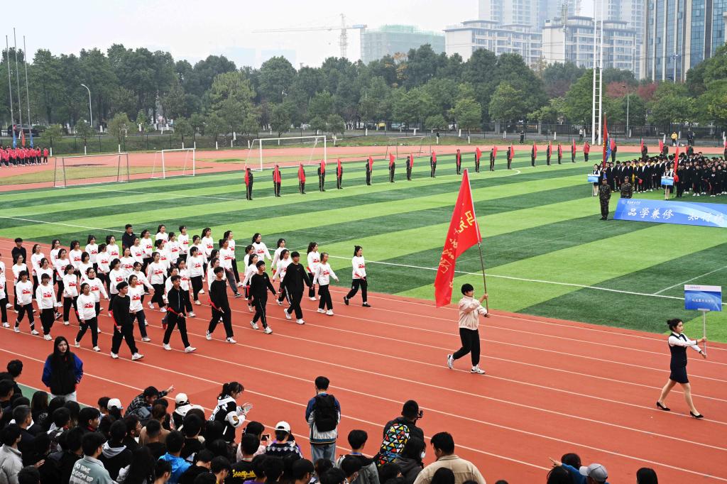 校长汤放华致开幕词,他沿用毛泽东同志在《体育之研究》中提出的“文明其精神、野蛮其体魄”,鼓励全体同学积极投身体育锻炼。他指出,要站在为党育人、为国育才的战略高度,树立健康第一的教育理念,让同学们在体育锻炼中享受乐趣、增强体质、健全人格、锤炼意志,成长成才。希望参加本次运动会的全体运动员要遵守规则、公平竞赛、团结互助,弘扬拼搏精神,展现当代青年大学生的良好风貌;希望全体教练员、裁判员要恪尽职守,确保比赛公平公正和运动会的圆满精彩;希望全体工作人员认真履职,为比赛提供热情、高效、安全、优质的服务;希望全体师生能够以此次运动会为契机,爱上运动,养成体育锻炼的良好习惯,练就一副健康强壮的体魄,涵养团结合作、公平竞争、顽强拼搏的体育精神,立志为党和国家健康工作五十年!