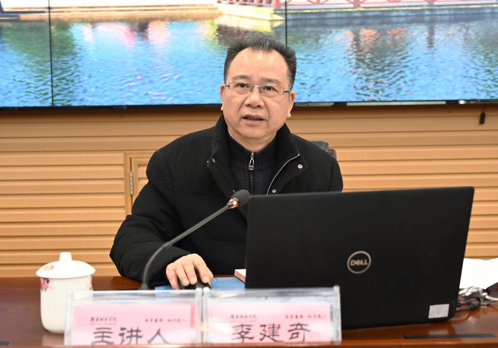 李建奇强调,伟大建党精神是共产党人精神谱系的根和魂,是中国共产党精神的“孵化器”或“工作母机”,井冈山精神、长征精神、两弹一星精神、抗疫精神等是伟大建党精神的演进。我们要继承弘扬伟大建党精神,坚持科学理论,激发真理伟力;践行初心使命,坚持人民至上;发扬斗争精神,应对风险挑战;永远保持忠诚的政治本色,永葆先进性和纯洁性,发挥示范带动作用,沿着学校第四次党代会确定的目标持续奋斗。