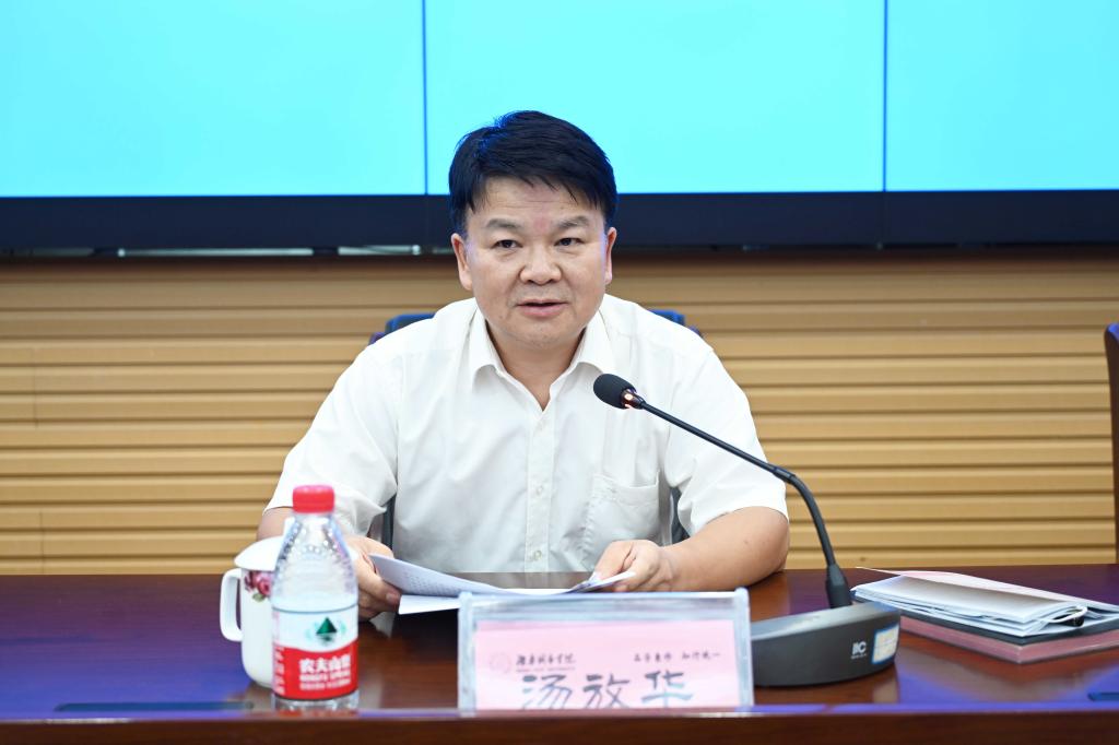 汤放华指出,面对炎热酷暑,许多同志暑期仍坚守在岗位上,兢兢业业,履职尽责,表现出强烈的事业心、责任感以及担当作为、无私奉献的精神品质,很好完成了假期各项工作任务。他表示,当前疫情还比较严峻,要严格执行秋季开学疫情防控工作方案和预案要求,落实相关疫情防控工作。要提高站位,聚焦迎接党的二十大胜利召开的年度主题,强化意识形态工作,加强网络舆情管控,维护校园安全稳定,积极营造喜迎党的二十大的浓厚氛围。同时,汤放华还就教育教学、学生管理、后勤保障等工作作了详细安排和部署。