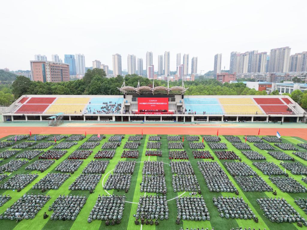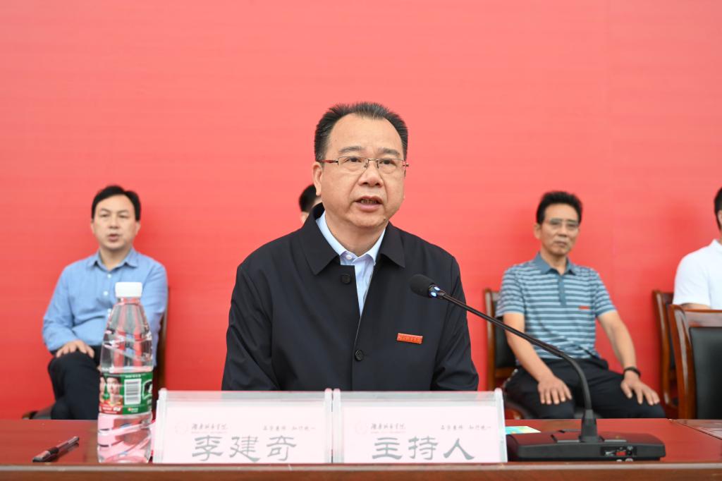 本网讯(文/图文彦波 张蓥 彭钦来 视频/张飞雪 李新会)四季长天同谱瑞,三秋桂子又飘香。9月23日上午,华体会在线(中国)唯一官方网站东田径场内红旗飘扬,口号嘹亮,欢声雷动,2022级本科新生开学典礼暨军训总结表彰大会正隆重举行。党委书记李建奇、校长汤放华等全体校领导出席,机关各部门主要负责人,各二级学院院长、书记、分管学生工作的副书记,2022级新生辅导员、班主任、教师代表以及2022级5913名本科新生参加。大会由李建奇主持。