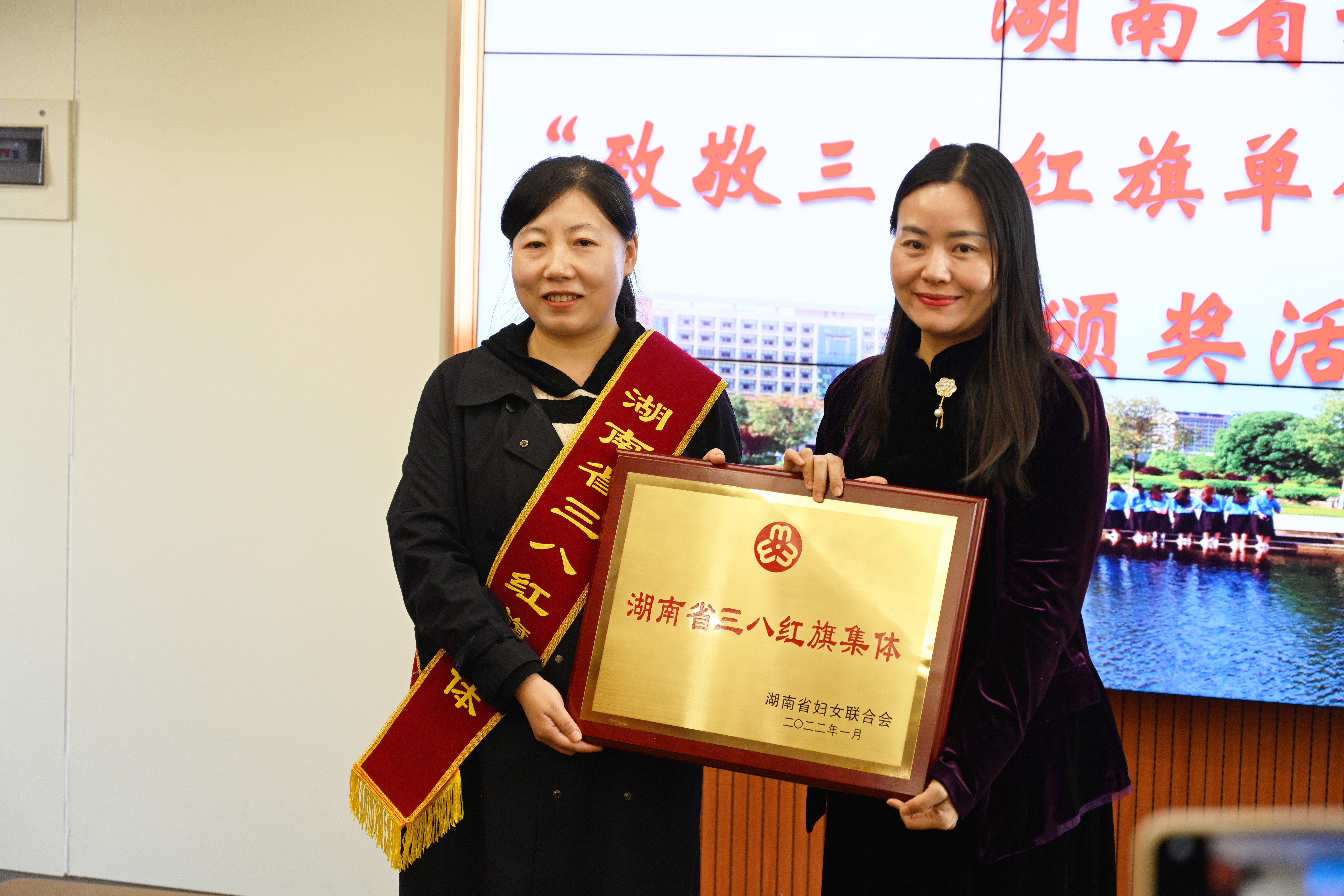 随后,省妇联权益部部长罗琼宣读了省级“三八红旗集体”表彰决定并颁发奖牌。获奖集体代表王锋娟发表了获奖感言,表示此次获奖既是一份荣誉,也是一份责任,今后将继续发扬巾帼建功精神,为落实立德树人根本任务贡献更多力量。